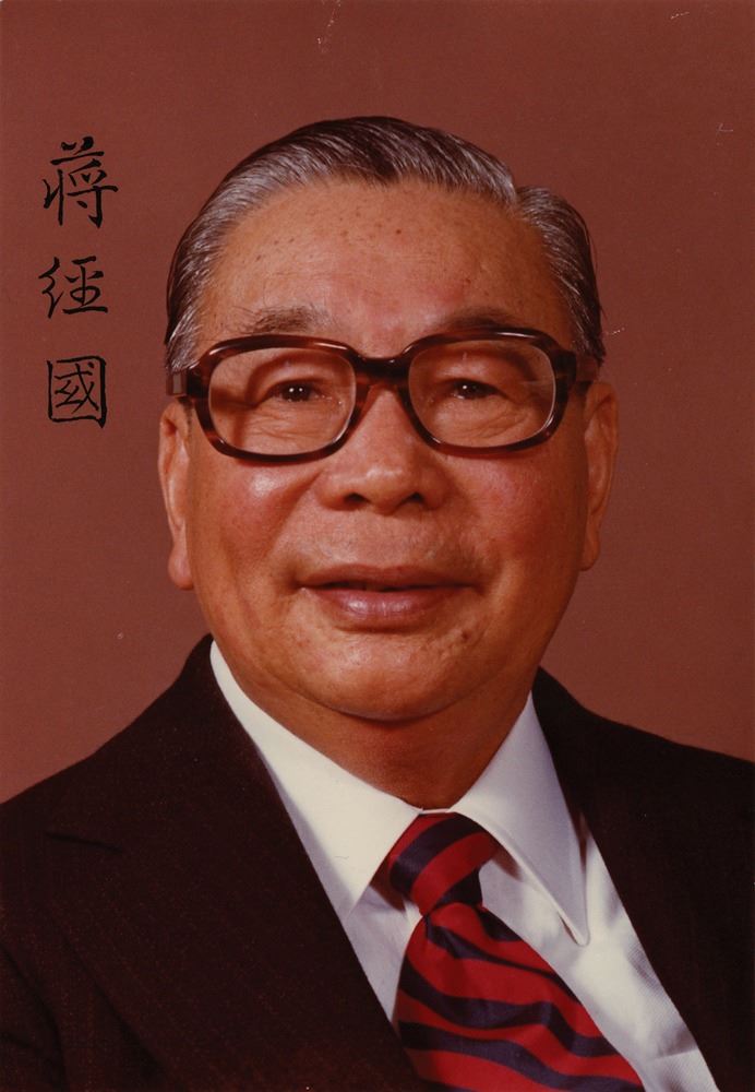 Color satin-finish 5 x 7 head-and-shoulders photo of Chiang Ching-kuo, signed in black felt tip. In fine condition, with faint paperclip impressions to the top edge.