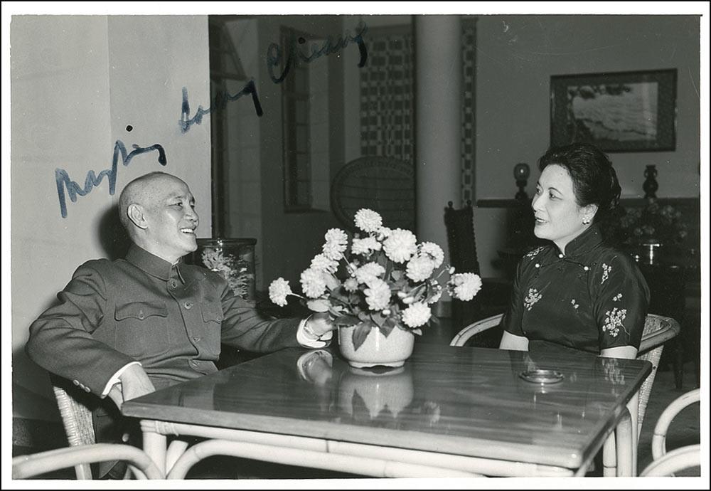 TLS signed in Chinese, one page, 7.75 x 11, President of the Republic of China letterhead, August 24, 1957. Letter to Congressman Carroll D. Kearns of Pennsylvania. In full: “This is to acknowledge the receipt of your kind letter of August 5, 1957. Your deep concern over various aspects of the situation here is sincerely appreciated. I am particularly thankful for your good report before the House of Representatives on Taiwan. Regarding my book, I am glad to learn that you think it offers some points for consideration in this stage of international developments. I feel very strongly that the Free World is courting disaster if it continues to toy with the idea of having ‘peaceful coexistence’ with international Communism. Thank you very much for speaking of me in such glowing terms. I am fully aware of the fact that I have yet to discharge my responsibility to my people, and I shall need every bit of help good friends like you can give me, Madame Chiang joins me in sending you our best wishes.” In fine condition, with some mild edge toning, as well as some light creases and wrinkles. Accompanied by a glossy 5.5 x 3.75 of Chiang Kai-Shek and his wife, signed in black ink “Mayling Soong Chiang.”