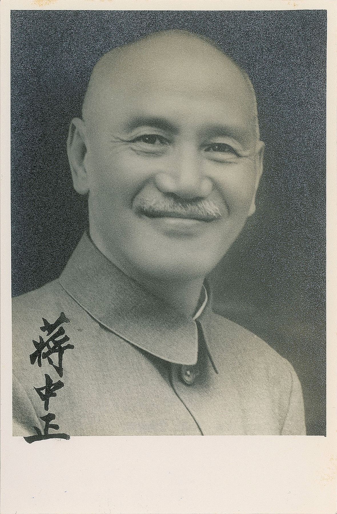 Matte-finish 3.75 x 5.75 head-and-shoulders photo of Chiang Kai-shek, signed in fountain pen in Chinese. Reverse stamp-dated March 12, 1960, and bears a Wu Chung Yee photography stamp. In fine condition, with light silvering to the background.