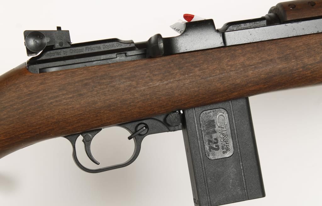 In factory box with (2) magazines and instruction manual. .22 Long Rifle copy of the M1 Carbine. Barrel, bolt and buttplate are steel. Trigger group, sights, front band and bayonet lug are synthetic. Op rod and receiver are alloy. There are no marks or damage to any part of this gun. Condition is very good to excellent. Modern Firearm *