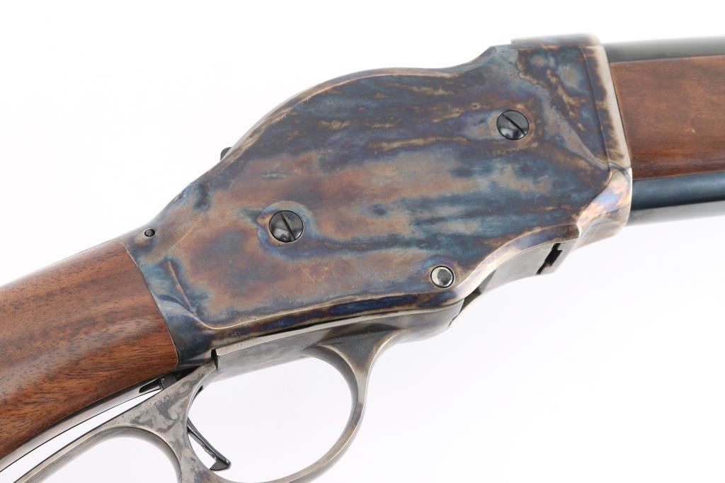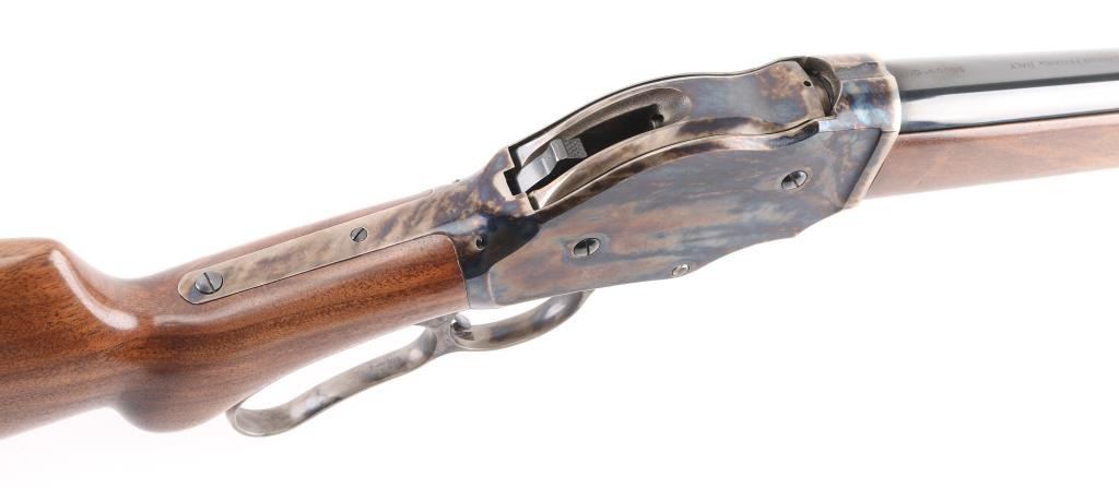 Lever action shotgun made in Italy by Chiappa, imported by IAC, Billerica MA. Features 28" barrel with brass bead front sight, blued case hardened finish, smooth hardwood stock & forend panels, factory steel buttplate Accepts 2-3/4" shells, choke tubes. Bore is very good. Bore is pristine, finish is excellent, wood is near excellent with a minor chip by the left upper tang. Installed tube not removed, measures CYL with a drop-in gauge. Comes with factory box with manual. NRA Condition-Excellent. Modern Firearm.