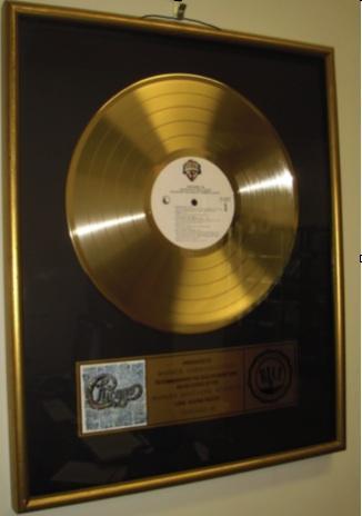 Chicago 18 Gold Plated Record with Mini Album CoverPresented to Warner Communications Certified RIAA Sales Award
