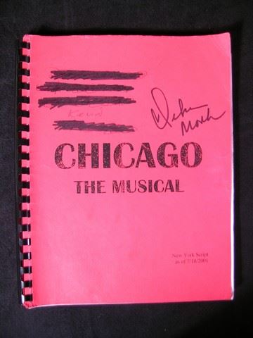 Debra Monk autographed script from the Broadway musical "Chicago." Script is dated 7-18-2001 and includes highlighted passages and handwritten notes. (11x9)