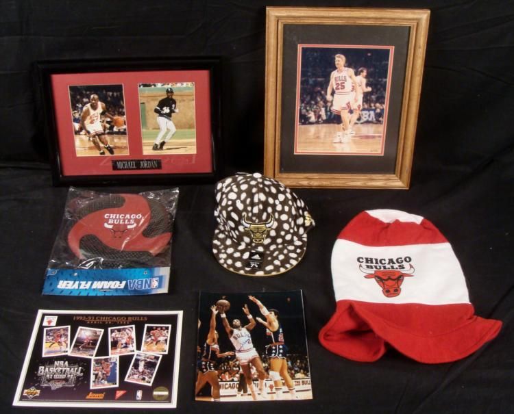 Last year the Chicago Bulls were one step away from the promise land. Can they take the next step and make there this year?? Offered here is great Chicago Bulls lot. In this lot you will receive: * 7 3/8 Addias Bulls Hat Chicago Bulls "Dr. Seuss-like" hat Chicago Bulls Foam Frisbee Autographed Norm Vonlier 8x10 photograph 1993 Jewel, Upper Deck, Limited Edition Chicago Bulls Sheet 13 1/4" x 16 3/8", Double Matted, Steve Kerr photo in a wooden frame 12" x 16", Matted, Michael Jordan dual photo (basketball and baseball) in a black frame, with his name in plateThere conditions range from very good to near mint. There are some stains on the back of Benny's jersey. Even though the season is in a lockout, doesn't mean you can't still cheer on your beloved Bulls with this great lot, bid now!!! *