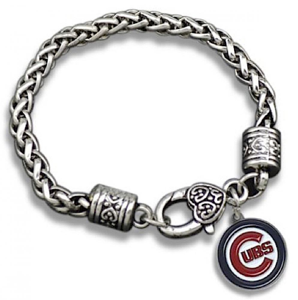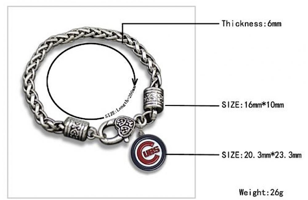 Chicago Cubs pendant charm bracelet. Hand Crafted by Professional Jewelers. Bracelet measures 200mm in length. Charm measures 20.3 mm x 23.3 mm.