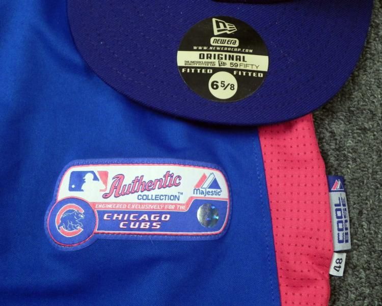 The new look Cubs are looking to bounce back after another losing season. Offered here are a Chicago Cubs jersey and baseball hat. This Cool Base Batting Practice jersey from Majestic and is authentic. It is a size 48, it's all blue with rip piping on the side,with the Cubs logo on the front and Ramon Ortiz's number on the back (#32). The hat is a New Era 5950 fitted hat, size 6 5/8, it is all blue with the Cubs logo on the front. Both are in near mint condition. What's a better way to cheer on the revamped Cubs that bidding on these great items today!!