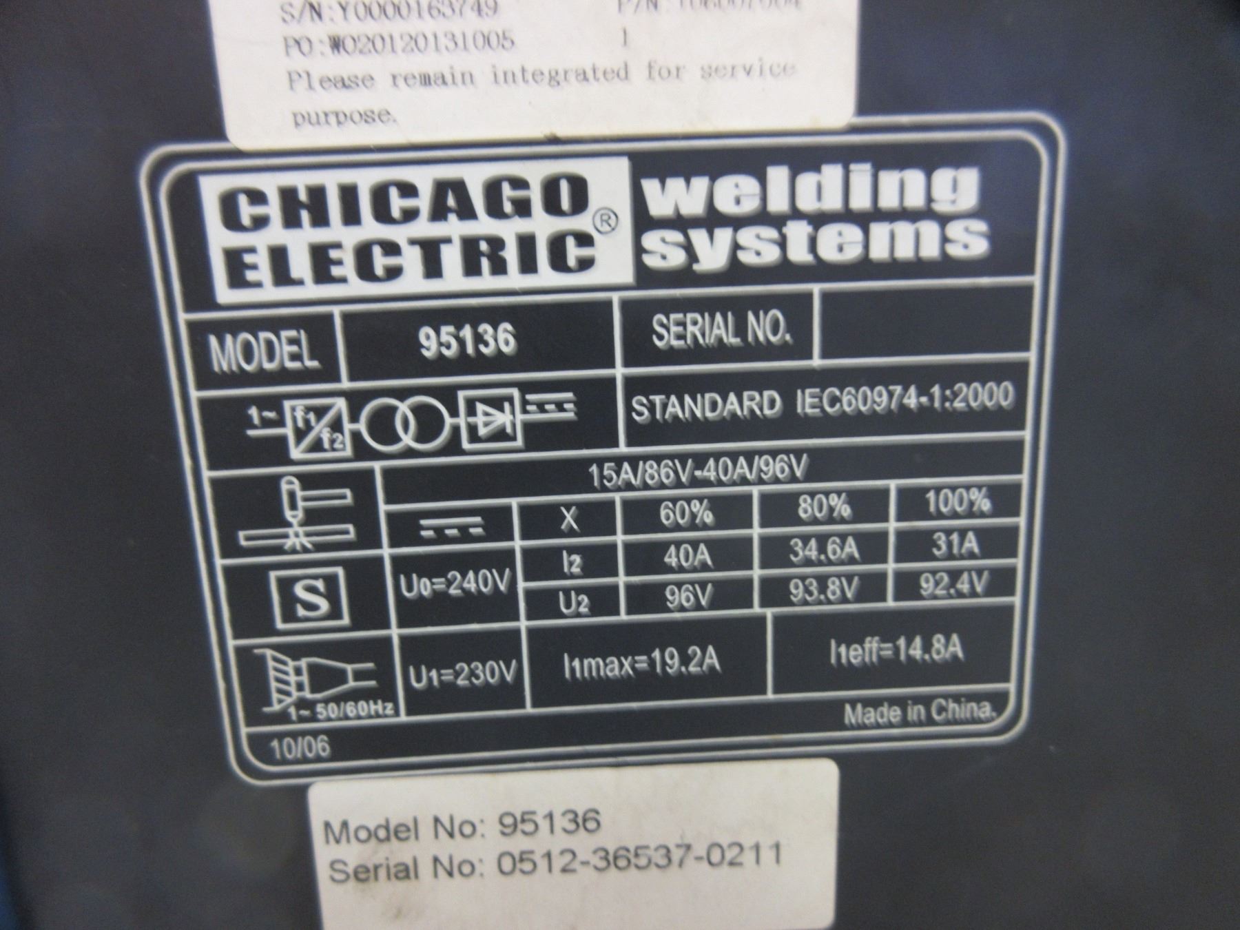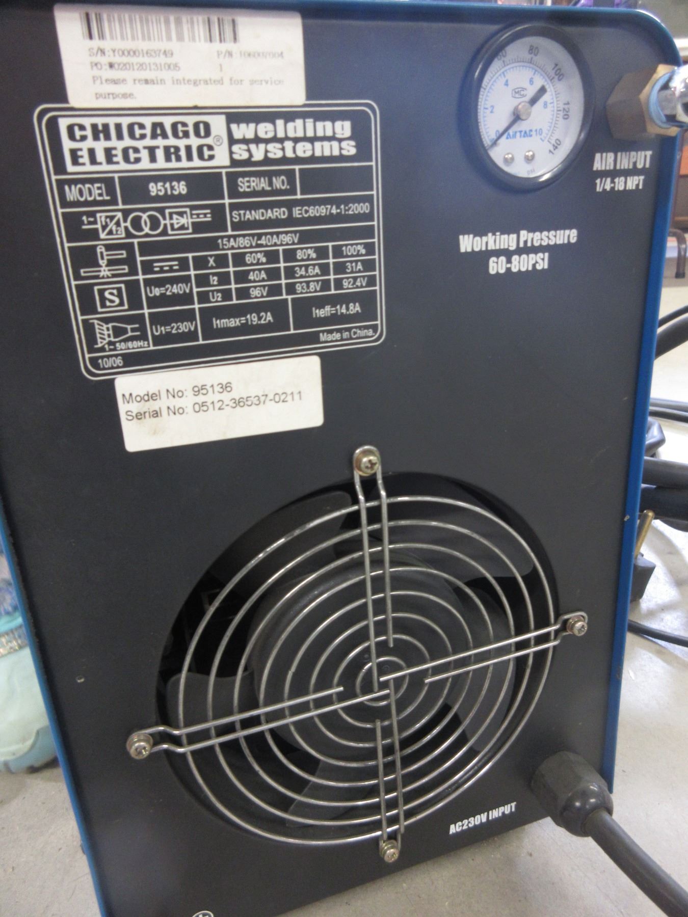 Chicago Electric Inverter Air Plasma Cutter- Model 95136- 40 AMP- Manual- Like New Condition