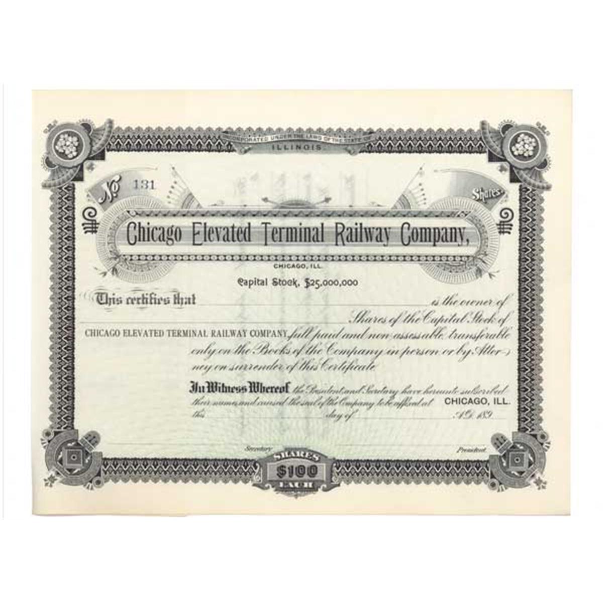 189-, Illinois. Unissued stock certificate. Black / White. Ornate border. Green underprint. Blind embossed company seal. Stamp cancelled.