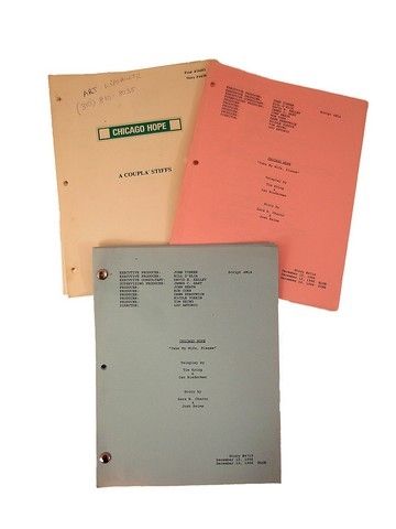 From the ground breaking six season hospital drama, the award winning TV series "Chicago Hope" here are two original production scripts from episodes entitled "Take My Wife, Please" and "A Coupla's Stiffs".