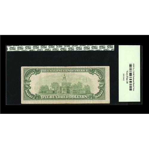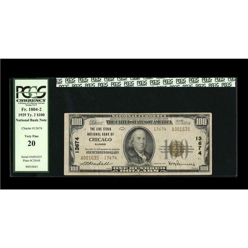 <B>Chicago, IL</B></I> - $100 1929 Ty. 2 <B>The Live Stock NB</B></I> Ch. # 13674<BR>An evenly circulated example of this always in demand type and denomination which has been encapsulated by PCGS and graded <B>Very Fine 20.</B></I>