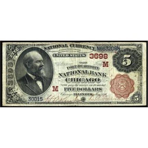 Chicago,IL $5 1882 Brown Back.The Fort DearbornNB
