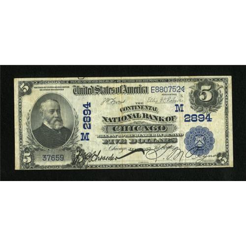 <B>Chicago, IL</B></I> - $5 1902 Date Back Fr. 590 <B>The Continental NB</B></I> Ch. # (M)2894<BR> The paper is bright and problem free. <B>Very Fine.</B></I><BR><I>From The John Ameen Collection</B></I><BR><BR><b>Shipping:</b> Coins & Currency (<a target="_blank" href="http://www.heritageauctions.com/common/shipping.php">view shipping information</a>)