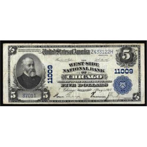 Chicago, IL. $5 1902 Plain Back. Fr. 606. The West Side NB. Charter #11009. Fine+.