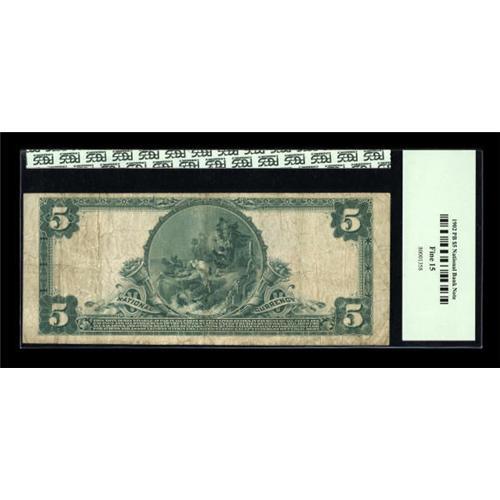 <B>Chicago, IL</B></I> - $5 1902 Plain Back Fr. 606 <B>The West Side NB</B></I> Ch. # (M)11009<BR> Printed signatures are found on this $5 with Thomas J. Healy as president. <B>PCGS Fine 15.</B></I><BR><BR><b>Shipping:</b> Coins & Currency (<a target="_blank" href="http://www.heritageauctions.com/common/shipping.php">view shipping information</a>)