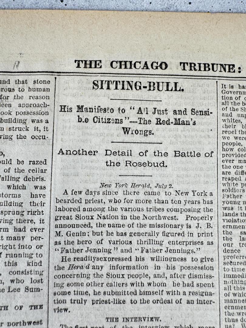 This article is interesting in that it talks about Sitting Bull and the Sioux. It ran after the Battle Of The Little Big Horn, but before word of the battle had reached "civilization".