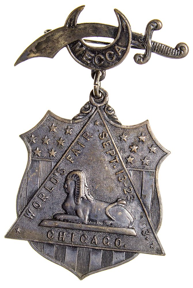 1893 Chicago. Mecca World`s Fair Sept. 13-23. Very Important Chicago Worlds Fair Commemorative Medal given to Members of Mecca Shrine booth attendees from New York, the Mecca Shrine was the original Shrine set up in 1872. The Chigago Wolds Fair of 1893 was significant as it was the birth of Modern Science and Industry showcasing what was to become of the United States and the Shrine as the one of the largest Charity Orginaztions the World has ever see. Heavy Cast Brass. One of these medals is in the Museum of Fine Arts in Boston. Very Rare - HKA#65086