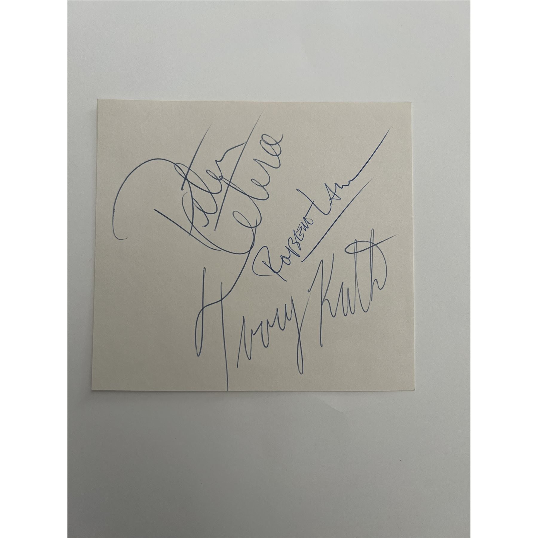 Autographs are certified by a 20 year plus member of IADA (International Autograph Dealers Association) , UACC (Universal Autograph Collectors Club), IACC - International Autograph Collector Club), Manuscript Society, SAG (Screen Actors Guild), Southern California Motion Picture Council, APS (American Philatelic Society), ASCC (American Society Of Check Collectors), AFDCS (American First Day Cover Society), Hollywood Heritage Museum, and the Golden State Boxing Association. Additionally a memb