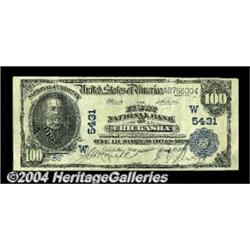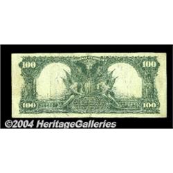 Chickasha, OK - $100 1902 Plain Back Fr. 705 The First NB Ch. # (W)5431A most attractive example which is one of just three large hundreds recorded from here in the Kelly census. Nice Very Fine+, purchased from (according to the tag on the holder) long time Dallas dealer Tom Bain on August 19, 1966. <BR><BR><B>Important notice:</B> Heritage usually auctions material at the rate of 200-250 lots per hour. On some occasions eBay Live bid software or the Internet may not be able to keep up with the pace of the auction. We recommend placing a realistic absentee bid now as insurance to avoid disappointment. Occasionally the auctioneer may eliminate or reject an eBay Live bid, and the auctioneer may also reopen a lot after the close of the eBay live bidding (usually because we missed an audience bid), and may reject your bid even if it shows you as the winning bidder. By bidding via eBay Live, you agree that Heritage may award the lot to another bidder at its sole discretion under the circumstances described above or any other reasonable circumstances. Since eBay bids are not shown to us until we open the lot on the floor, we treat those bids just like floor bids. In most cases the floor responds before the eBay bid is presented to us, due to Internet lag time, so for consistency we have made it a policy that floor bids are always considered first over tie eBay live bids. Also please note that all Heritage lots purchased through eBay Live carry a 20% Buyer's Premium. Please make sure you read the Terms and Conditions before you bid. <BR><BR><B>IMPORTANT ANNOUNCEMENT ABOUT RESERVES:</B> Heritage now divulges all reserves on its web site 7 days before every auction. If you want to know whether the reserve on this lot has been met, and if not, what the reserve amount is, please visit this lot page on the HeritageCoin.com web site, or email: bid@HeritageGalleries.com