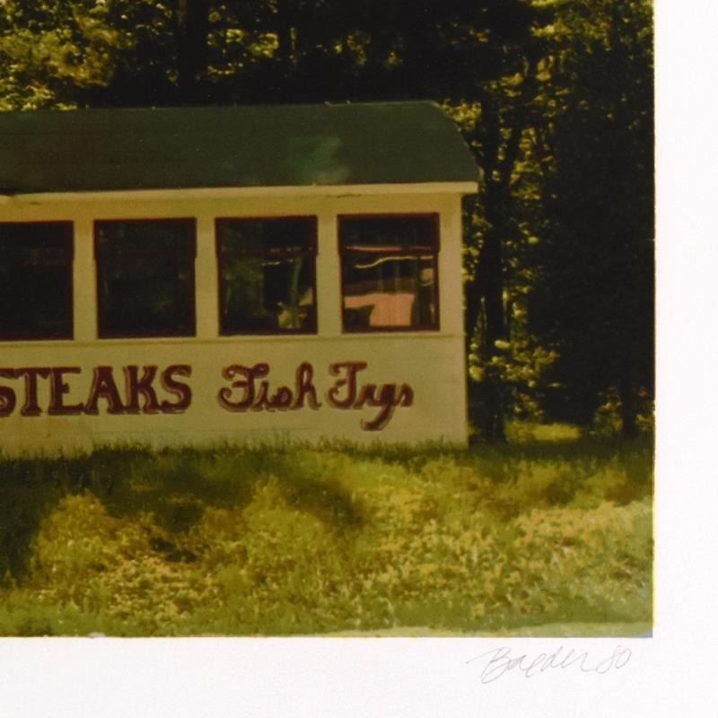 "Chicken Chops" is a limited edition silkscreen on somerset paper by John Baeder, numbered 147/250 and hand signed by the artist. Includes Letter of Authenticity. Measures approx. 30" x 22" (border); 24.5" x 16" (image). Due to the age of this piece there may be very minor wear on the corners that may be concealed when the piece is framed.