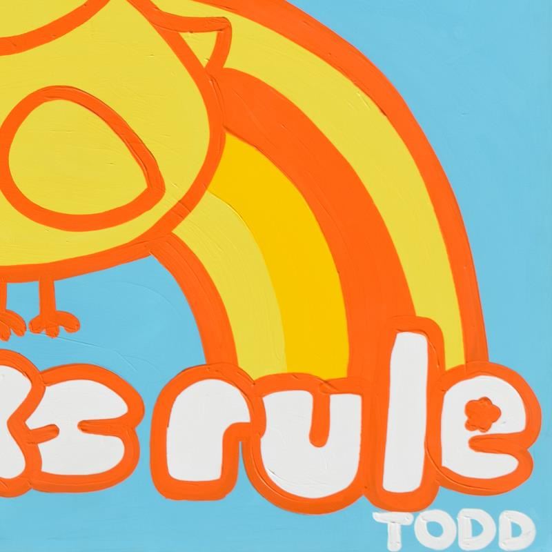 "Chicks Rule" is an original acrylic painting on gallery wrapped canvas by Todd Goldman, hand signed by the artist. Includes Letter of Authenticity. Measures approx. 60" x 48" (image). Due to the way this piece was stored there may be minor wear or signs of age (such as wear on the corners) but the piece is in overall good condition.