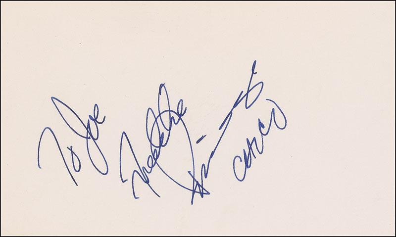 In-person ink signature and inscription, “To Joe, Freddie Prinze, Chico,” and felt tip signature and inscription, “To Joe, Jack Albertson,” on individual off-white 5 x 3 cards. In fine condition.