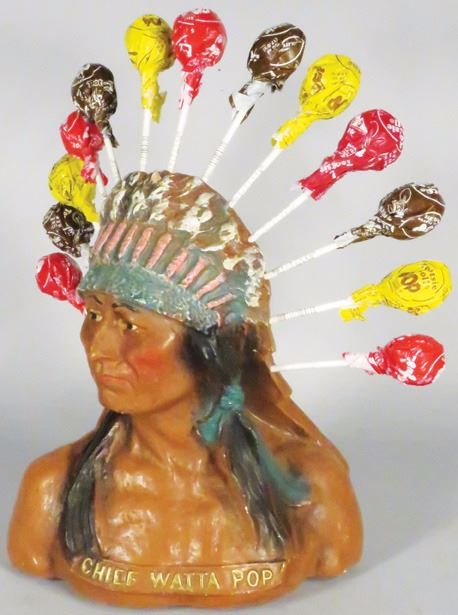 Chief Watta Pop Chalkware Display. A few rubs otherwise excellent condition. 8 X 10 X 5 inches.