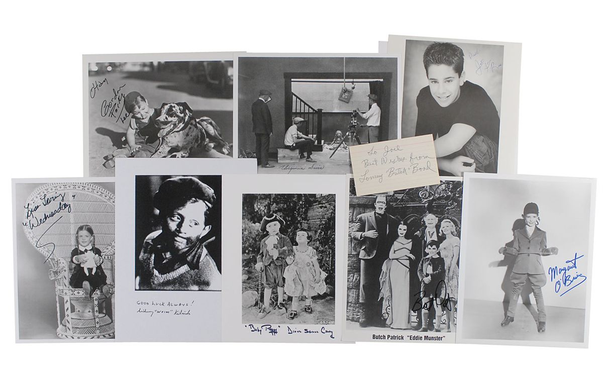 Collection of nine items, each signed by a child star, most uninscribed, including: Tommy Bond (signature), Virginia Davis (SP), Margaret O’Brien (SP), Lisa Loring (SP), Gordon ‘Porky’ Lee (SP), Diana Serra ‘Baby Peggy’ Cary (SP), Butch Patrick (SP), Justin Jon Ross (SP), and Sidney Kibrick (SP). In overall fine condition.