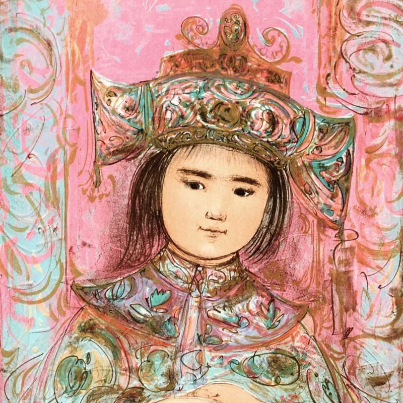 "Child of the East" is a limited edition lithograph on paper, numbered and hand signed by Edna Hibel (1917-2014). Includes Certificate of Authenticity! Measures approx. 20" x 26" (with border), 13" x 17.5" (image). Retail Price $635.00. PRICE INCUDES FREE SHIPPING IN THE U.S. - SHIPPING WILL BE ADDED TO YOUR INVOICE FOR ALL BUYERS OUTSIDE OF THE U.S.