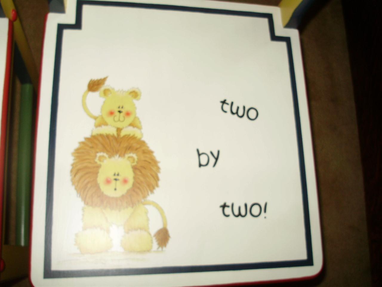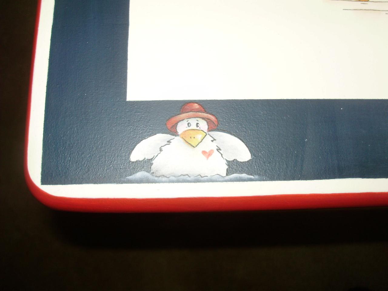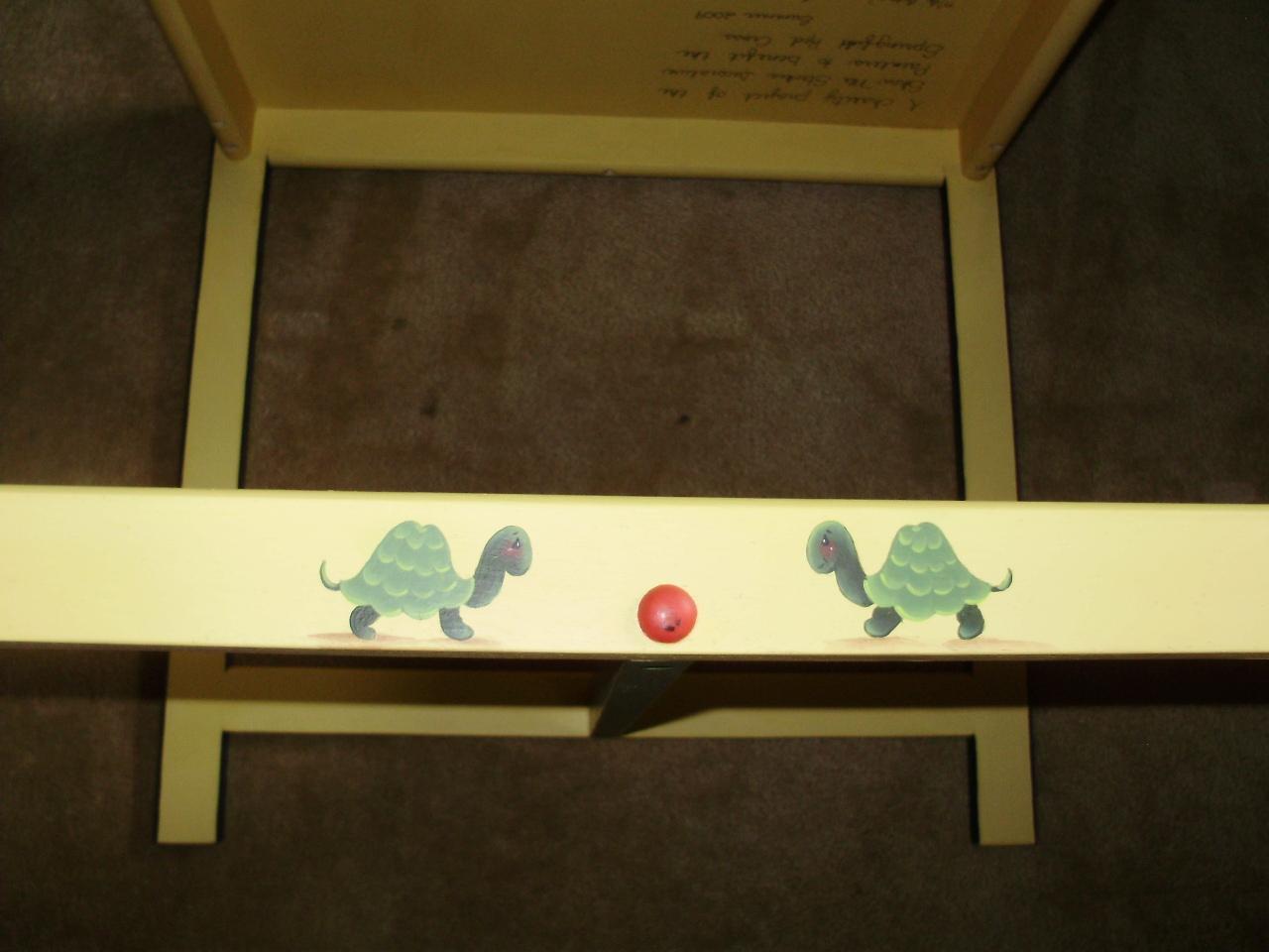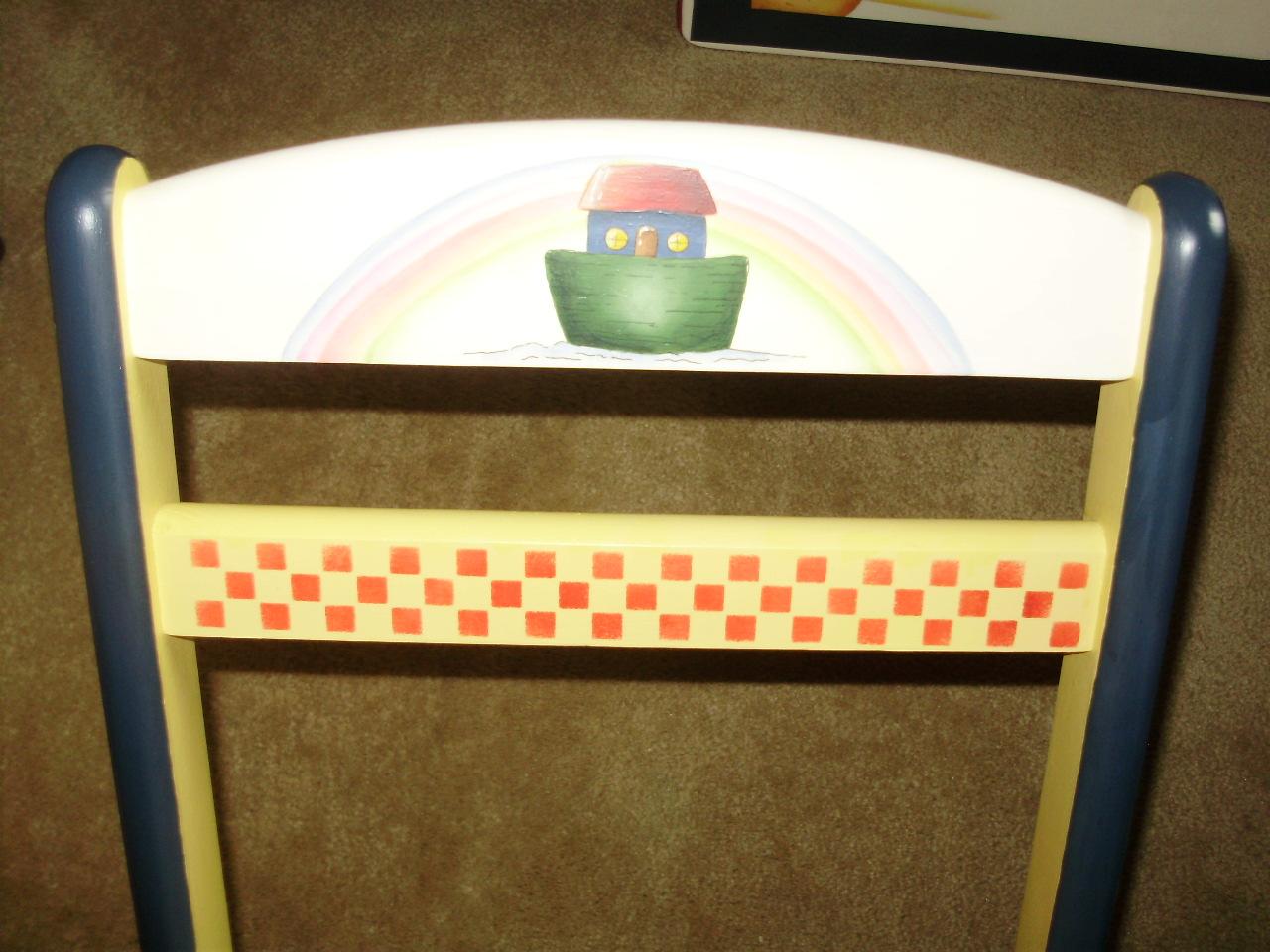 Fantastic One-of-a-Kind Painted Childrens Table and Chairs from Sho-Me Strokes Decorative Painters signed by the Artists, featuring Noah with his ark and the animals.