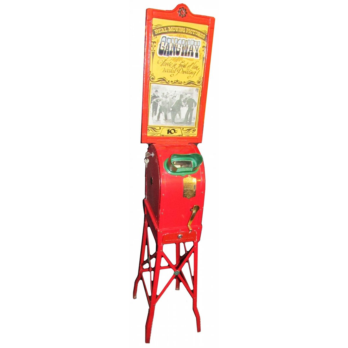 Child's Mutoscope with Charlie Chaplin Gangway, ca 1915. 10 Cent machine. Professionally restored, excellent working condition. 60 inches tall w/marquee.