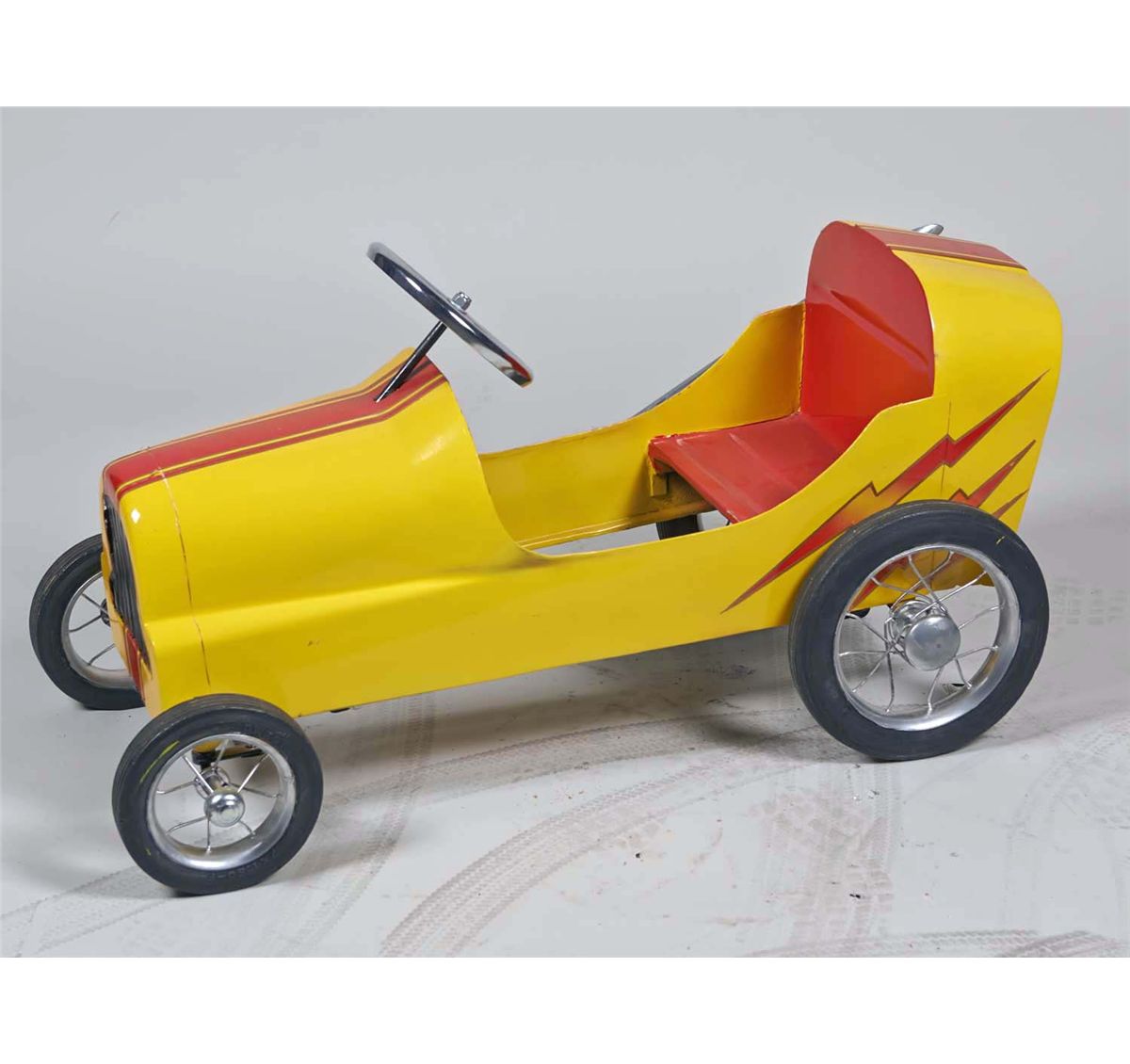 With lightning bolts and side exhaust pipe, front grill and hard rubber Midwest tires. Condition (Restored). Size 33" x 12"