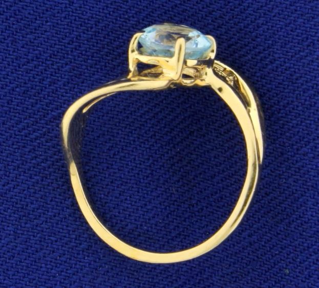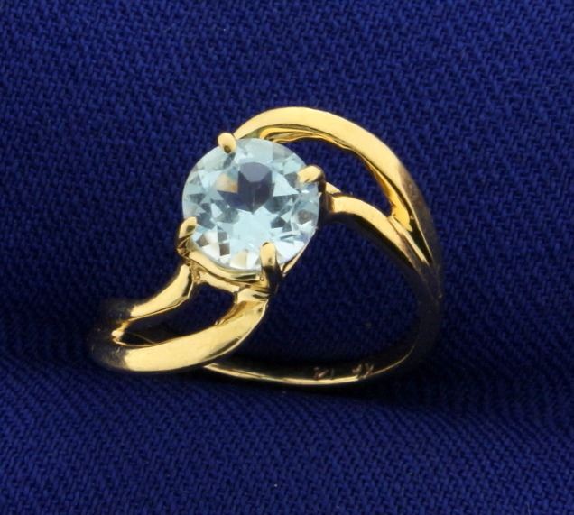 In 14k yellow gold. Contains a 3/4 ct Natural Sky Blue Topaz Gemstone with bright blue color and excellent clarity. Size 2 1/4. 1.5g.