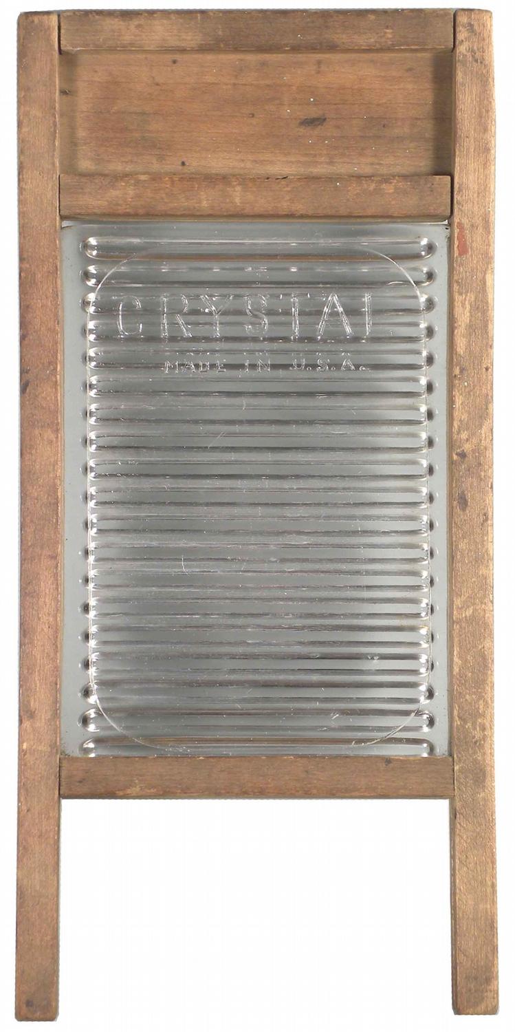 Child's Wood and Glass Wash Board by Crystal. Made in USA. No chips or cracks, excellent condition. 5 1/5 X 11 X 3/4 inches.