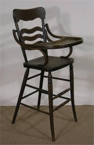 Child's high chair w/folding tray, oak, 40 inches tall. Good Cond.