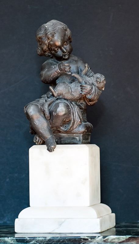 Child with Pug, Bronze Sculpture