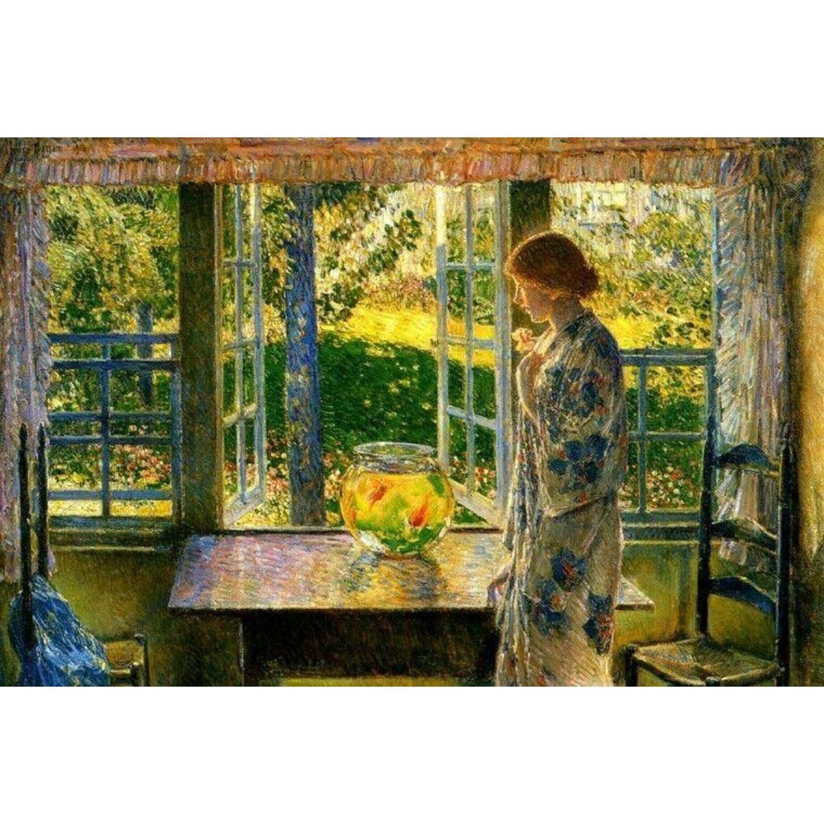 Childe Hassam, Goldfish Window color lithograph, after the original Impressionist painting. 12" X 16".Â