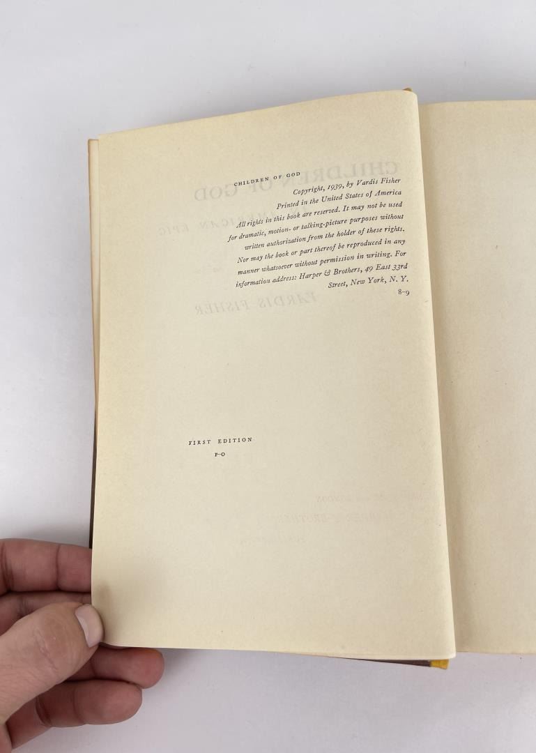 Vardis Fisher. First Edition 1939