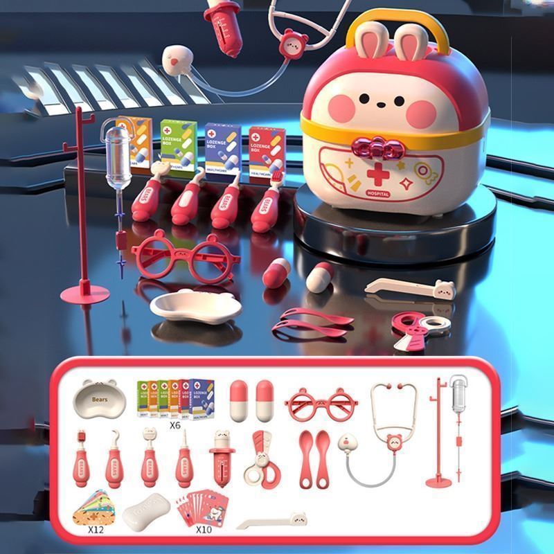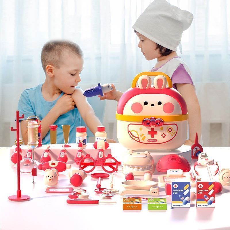 Product Name: Children's Simulation Educational Toys Set Gift, Packaging Dimensions: 7.9 x 7.7 x 6.9 inches. Features: This set includes 45 accessories, providing a realistic doctor role-play experience for children, fostering educational and imaginative play.