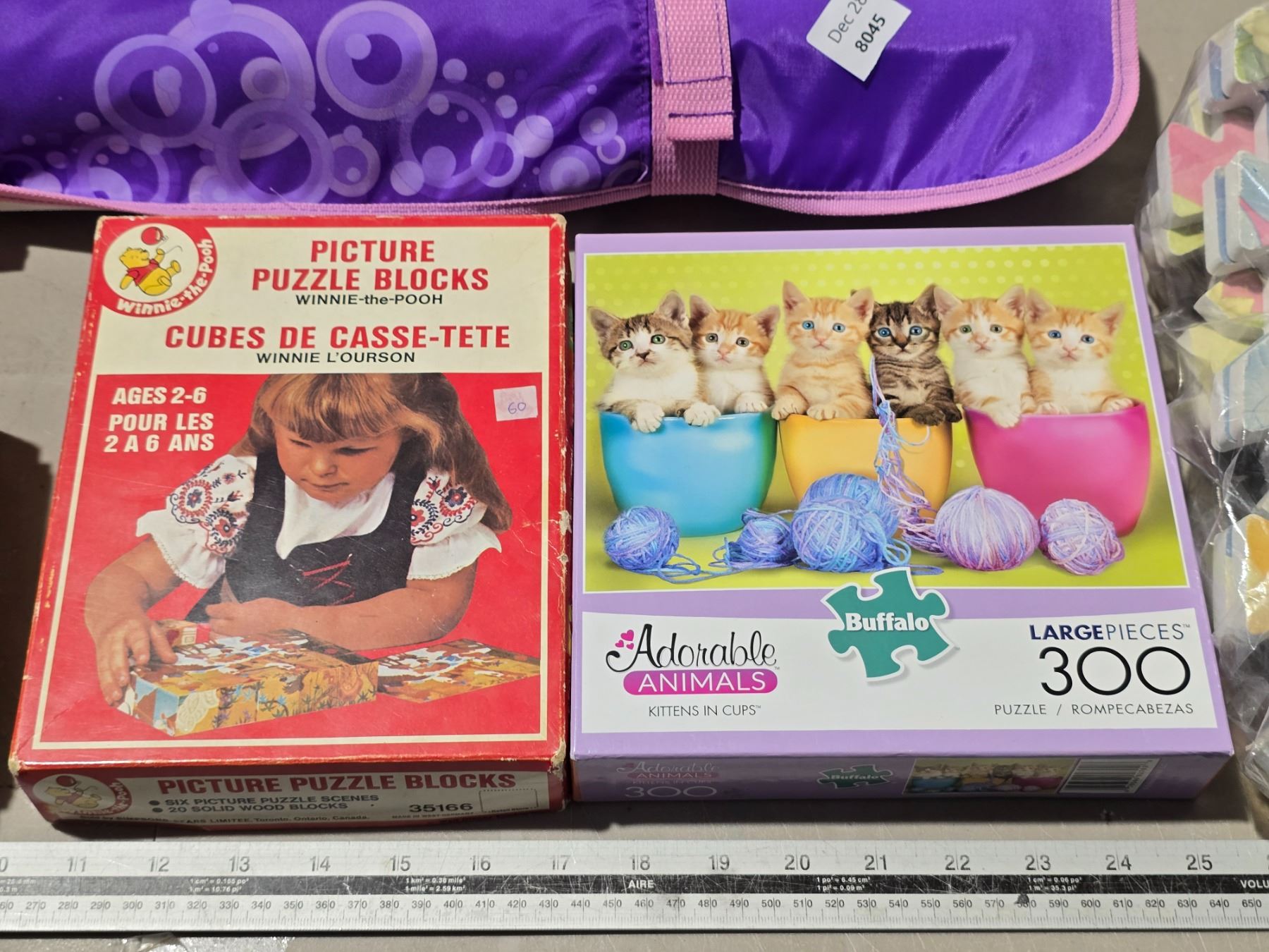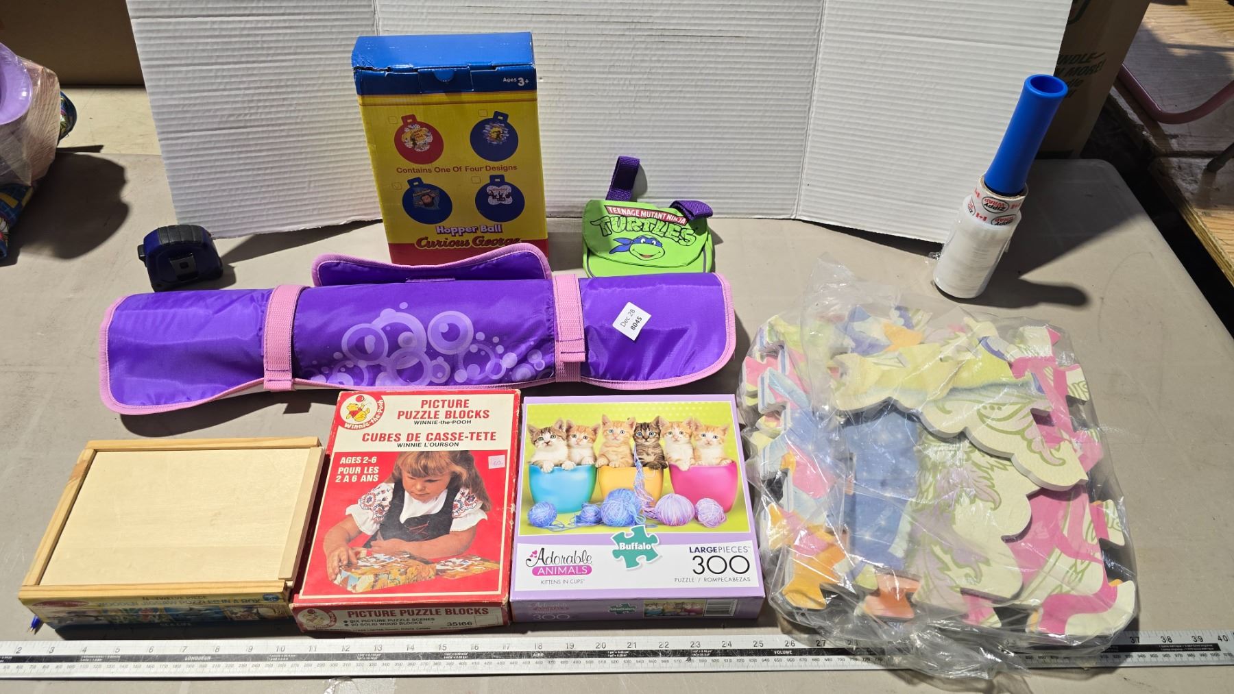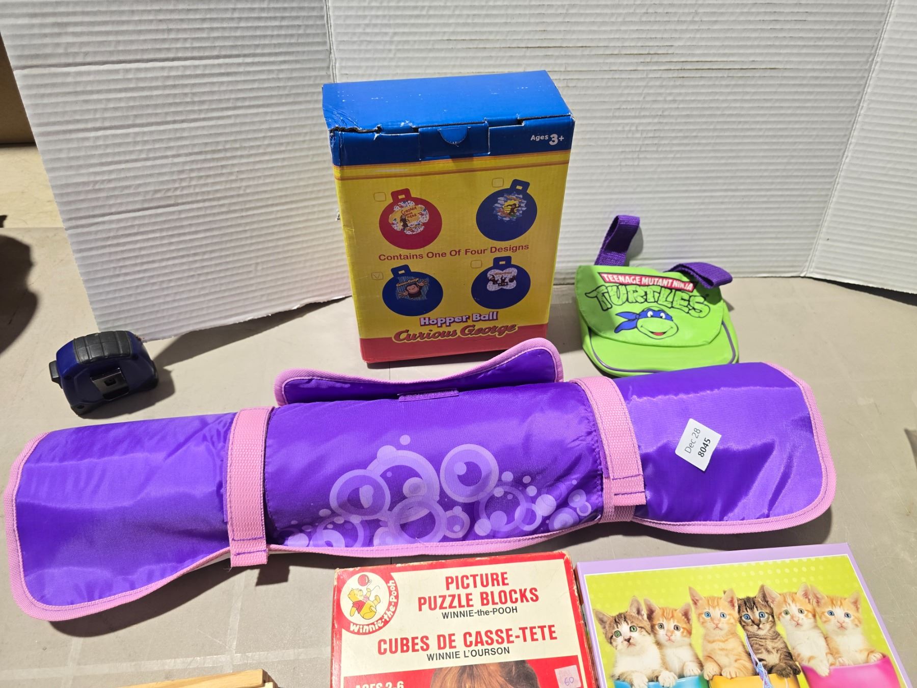 Children's toy bundle - Crayola mat, puzzles, Curious George hopper bal, etc.