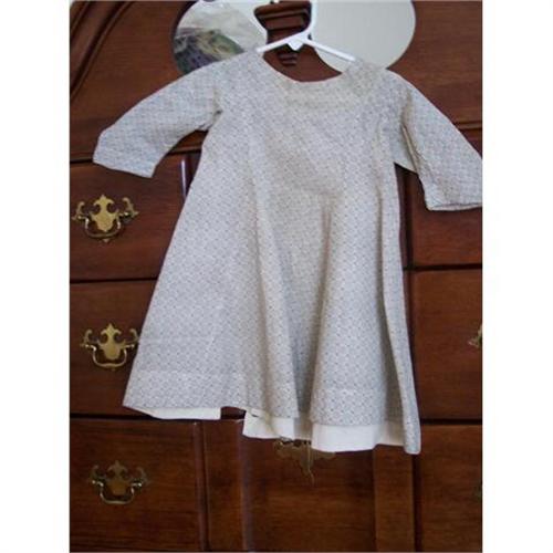 This is so cute just to hang,or on a doll.One button missing(I have extra old buttons,so can include)and one small stain on back about the size of a pencil eraser.No holes or tears.19 1/2"long,10" across shoulders,and arms approx. 7 1/2" long.Great early material with hem lined in old cotton material.On some of my vintage clothing I am guessing at their age.