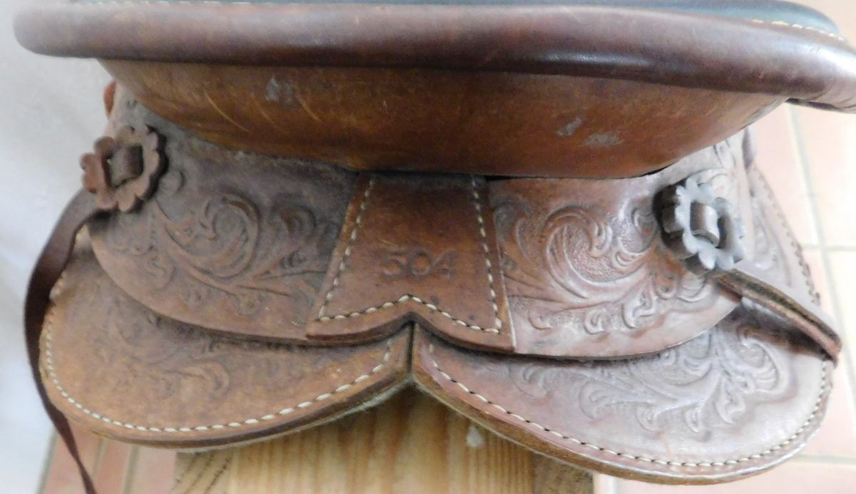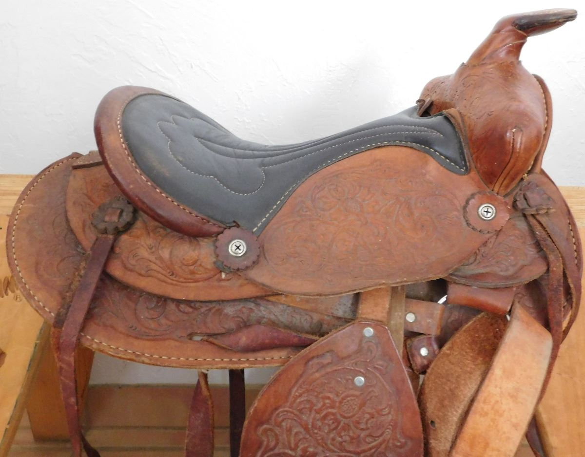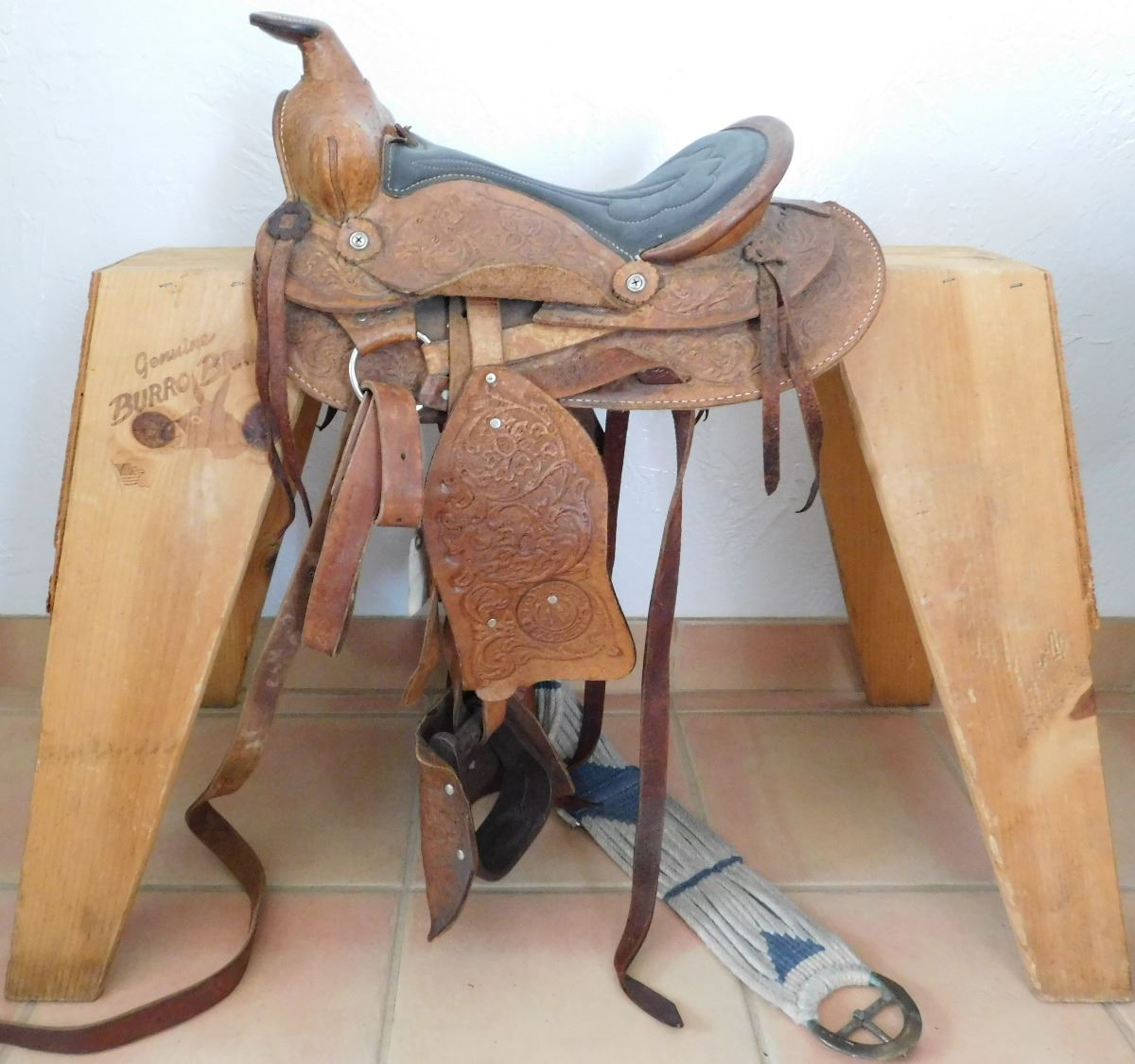 1950's Childs saddle measuring 20x12x24 inches.  The item was made by Red Ranger Saddle Company.  Shipping:  $65.00
