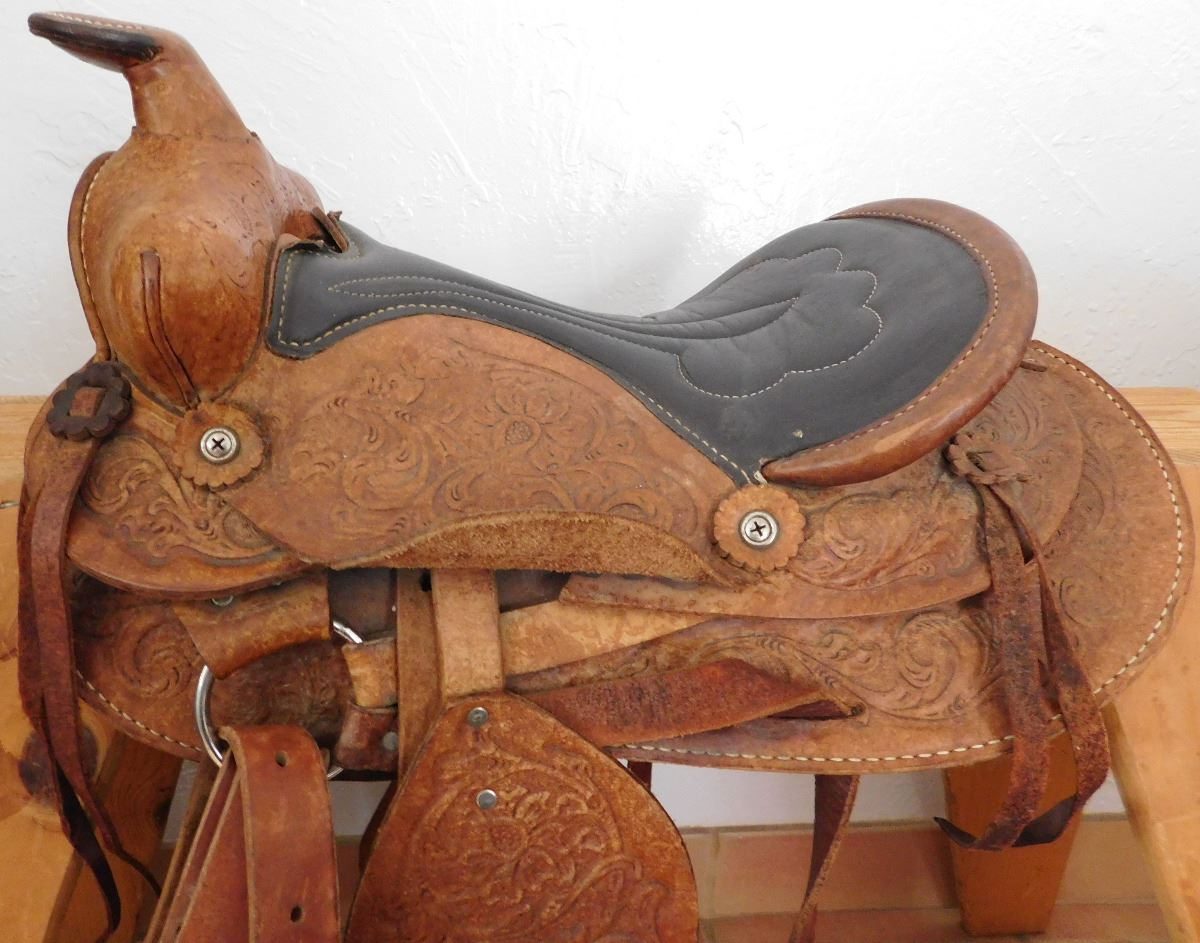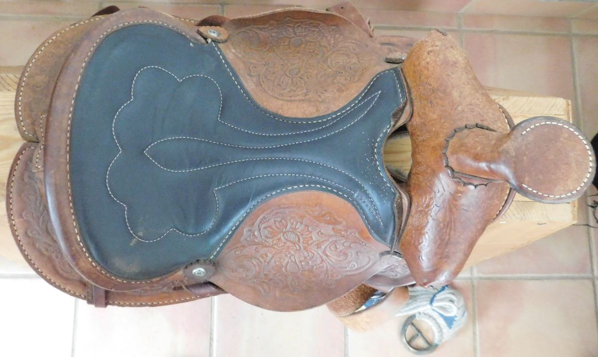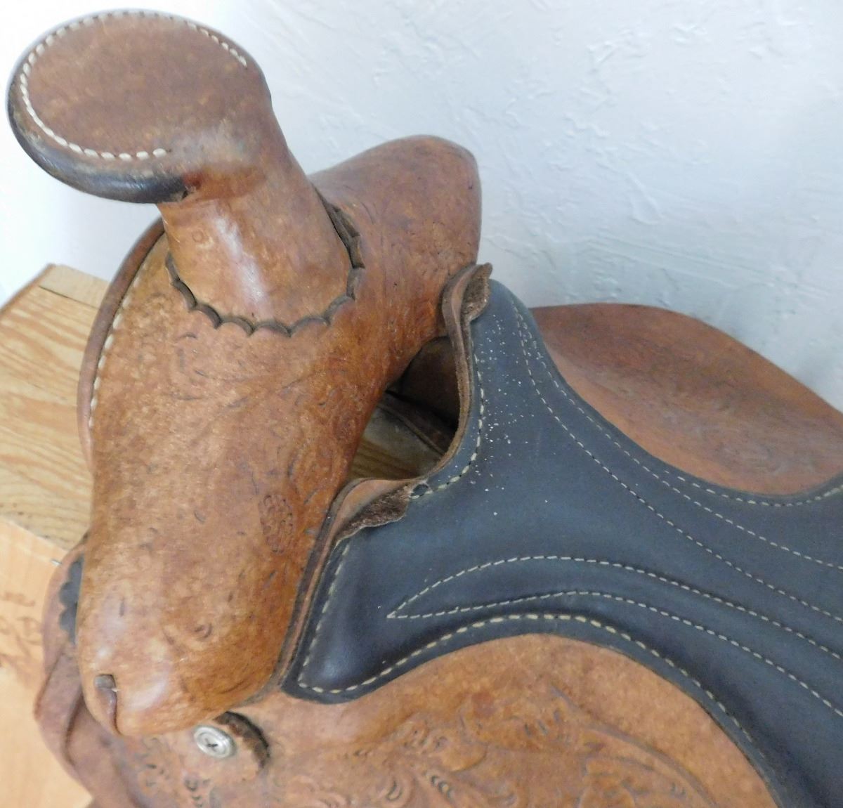 1950's Childs saddle measuring 20x12x24 inches.  The item was made by Red Ranger Saddle Company.  Shipping:  $65.00
