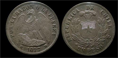 Chile 1877-So Peso, PCGS MS64, A gem example with russet toning and strong strike.