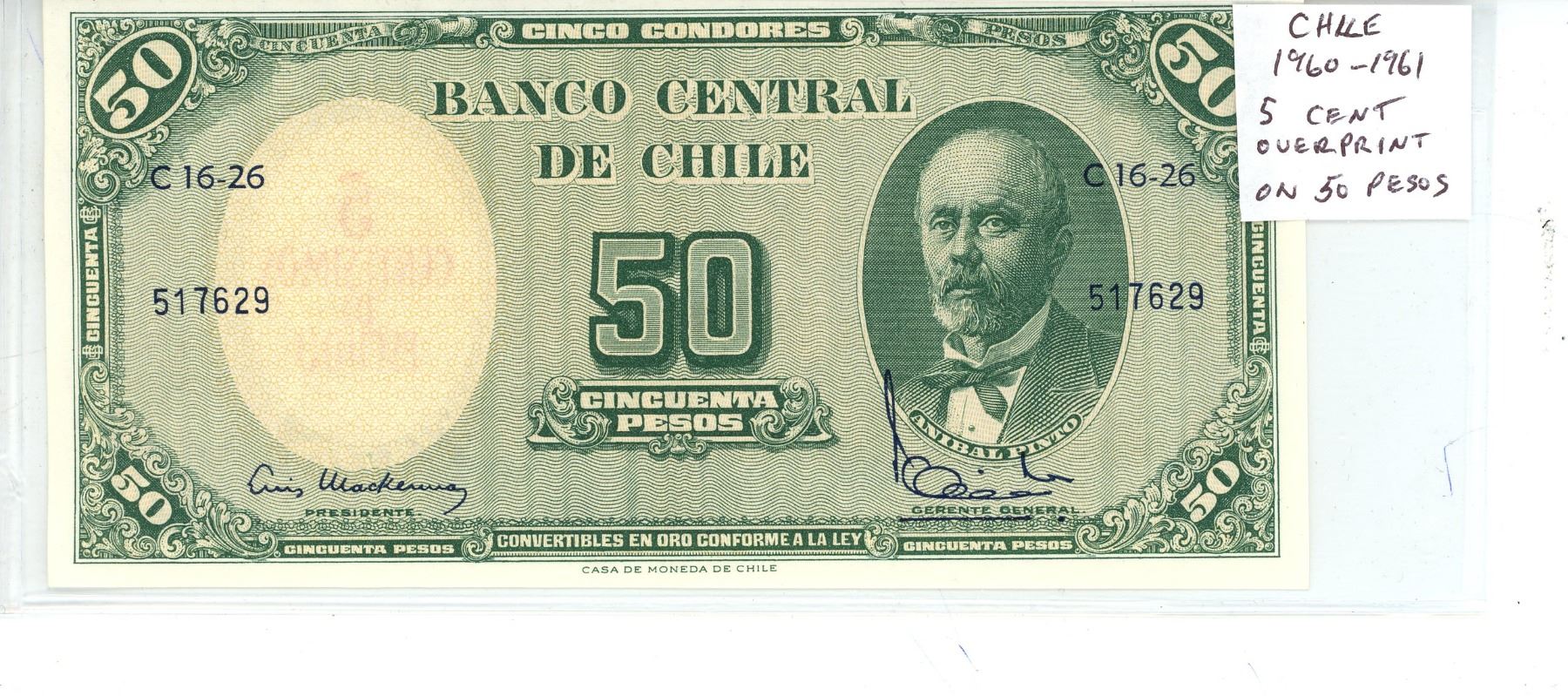 Chile 1960-1961 5 Cent Overprint on 50 pesos