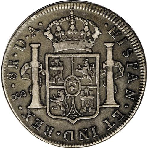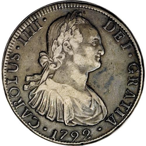 <B>Carlos IIII 8 Reales 1792-DA, </B></I>KM51, toned VF, bold details, rare early date for this reign and the first we have offered.<BR><BR><b>Shipping:</b> Coins & Currency (<a target="_blank" href="http://www.heritageauctions.com/common/shipping.php">view shipping information</a>)