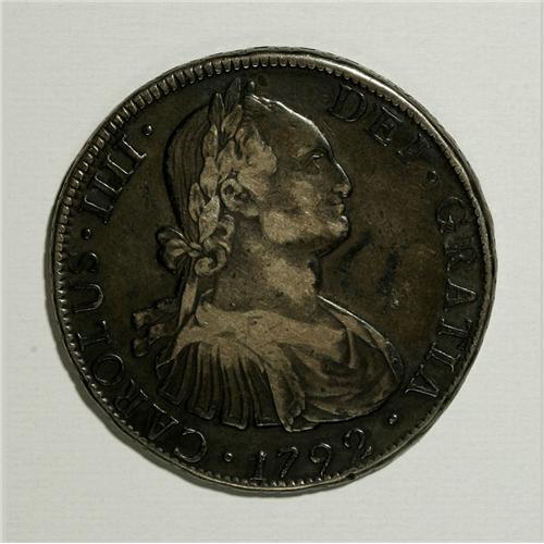 Chile: Carlos IIII 8 Reales 1792-DA, KM51, toned