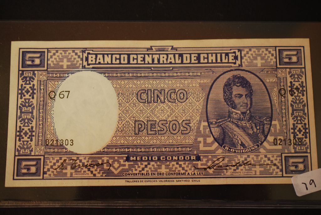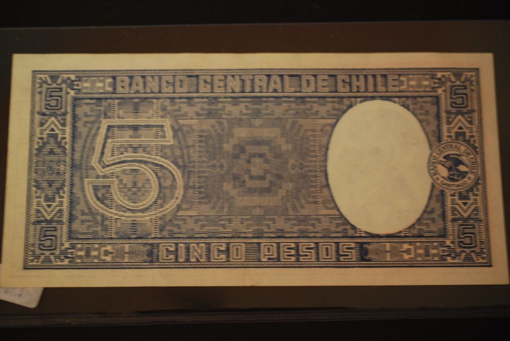 Chile Cinco Pesos Foreign Bank Note; EST. $3-6