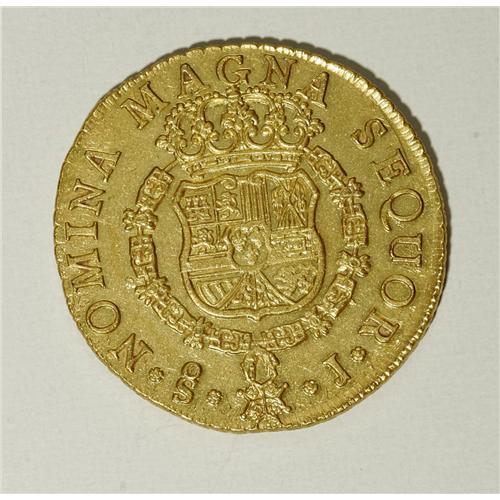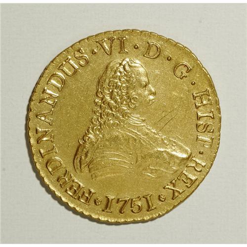 <B>Ferdinand VI gold 8 Escudos 1751-J, </B></I>KM3, exceptionally well-struck and attractive, two faint scratches in the right obverse field, barely noticeable. A premium example from the River Plate treasure with Certificate.<BR><BR><b>Shipping:</b> Coins & Currency (<a target="_blank" href="http://www.heritageauctions.com/common/shipping.php">view shipping information</a>)