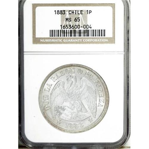 <B>Republic Certified Trio,</B></I> KM120 Centavo 1851 raised star, MS64BN NGC; KM146a Centavo copper 1886, MS65RD PCGS; and KM142.1 Peso 1883 round top 3, MS65 NGC.<BR><I>From the Robert Sayre Collection.</B></I><BR><BR><b>Shipping:</b> Coins & Currency (<a target="_blank" href="http://www.heritageauctions.com/common/shipping.php">view shipping information</a>)