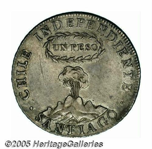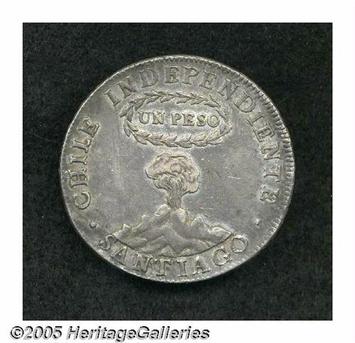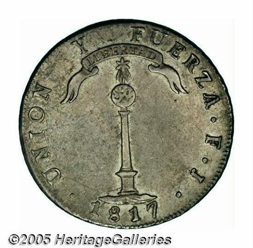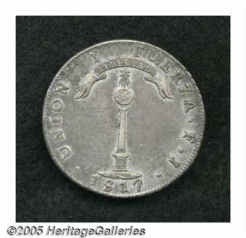 <B>Republic Peso 1817-FJ, </B></I>KM82.2, nicely toned XF, light scratches to the left of the volcano.
